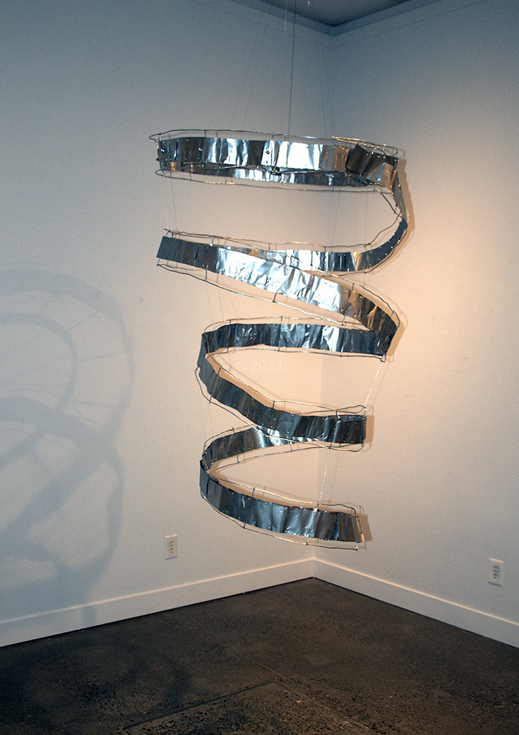 2020, 36" x 60", re-purposed aluminum cans, engraved with the words to the poem "All Membranes are Porous".